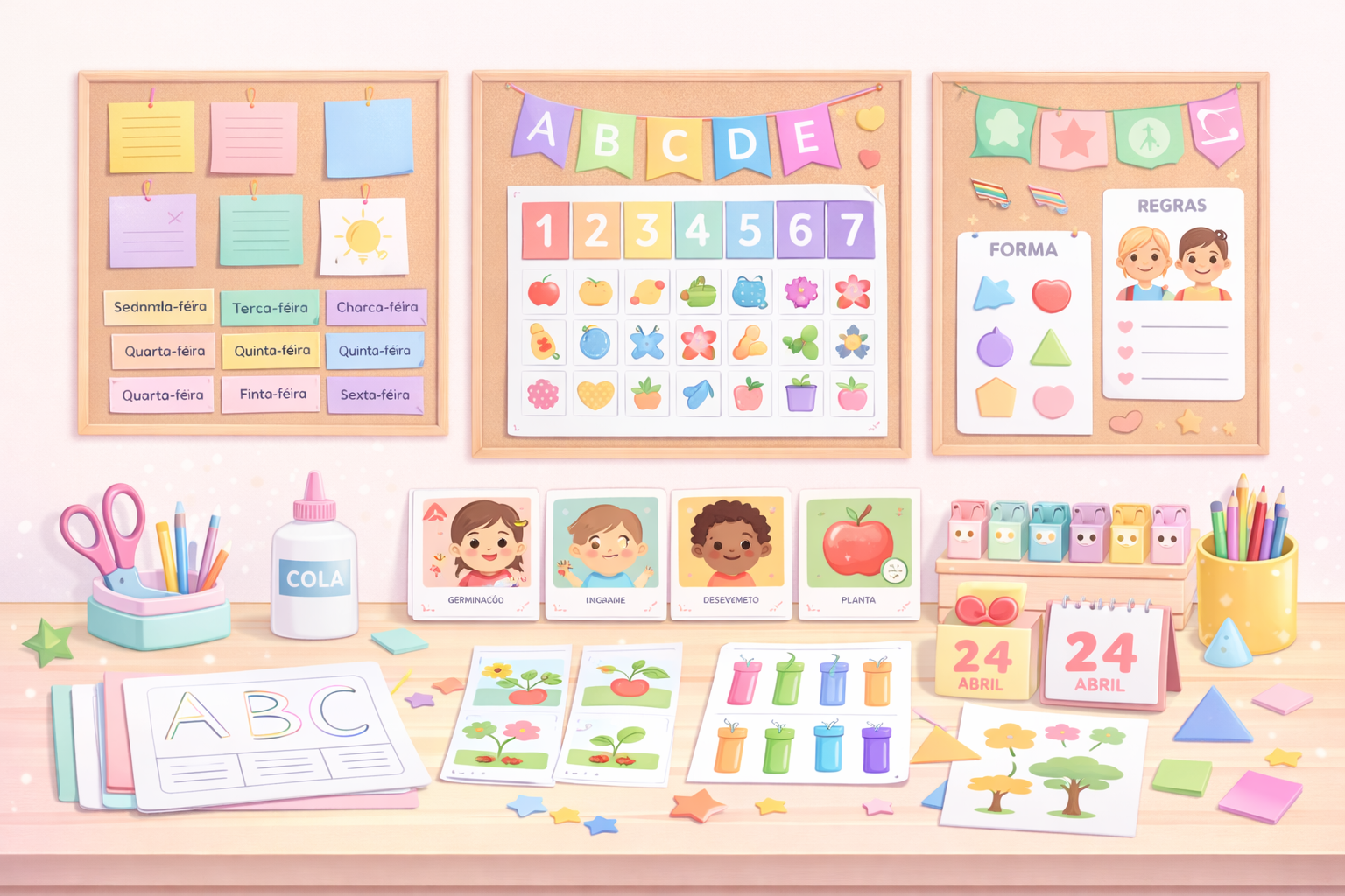 Atividades, painéis e projetos pedagógicos prontos para imprimir — todos os meses, sem correria.