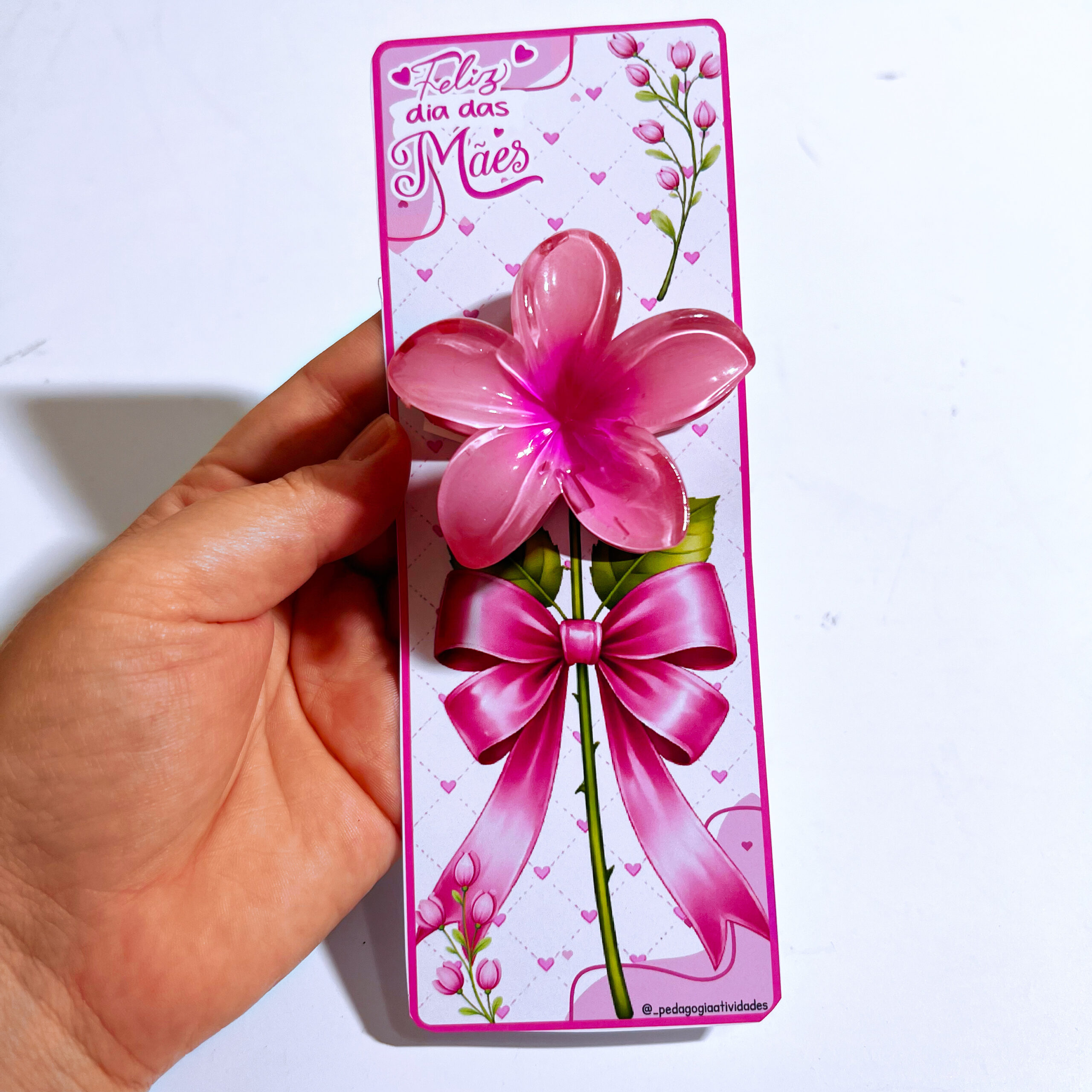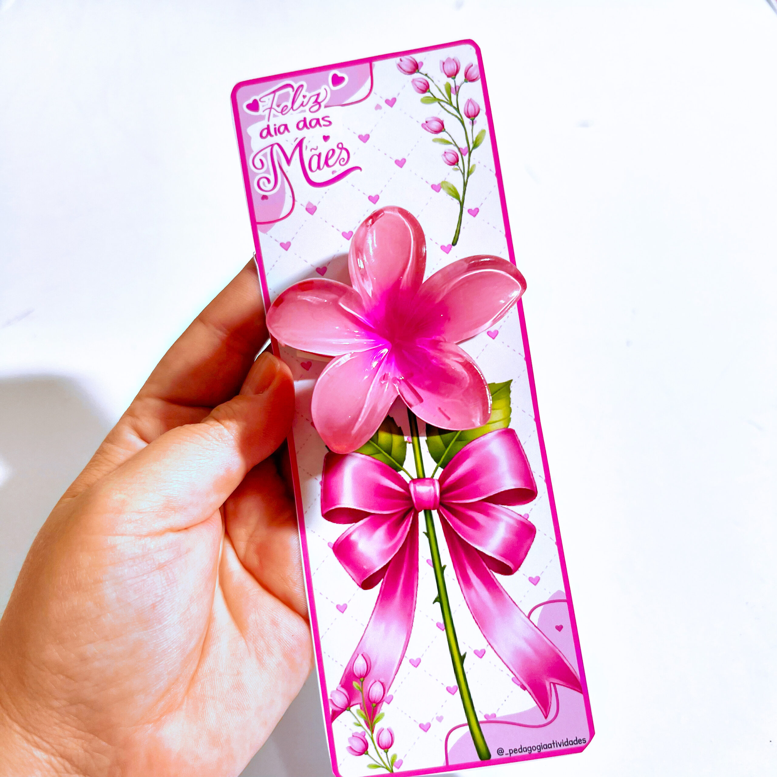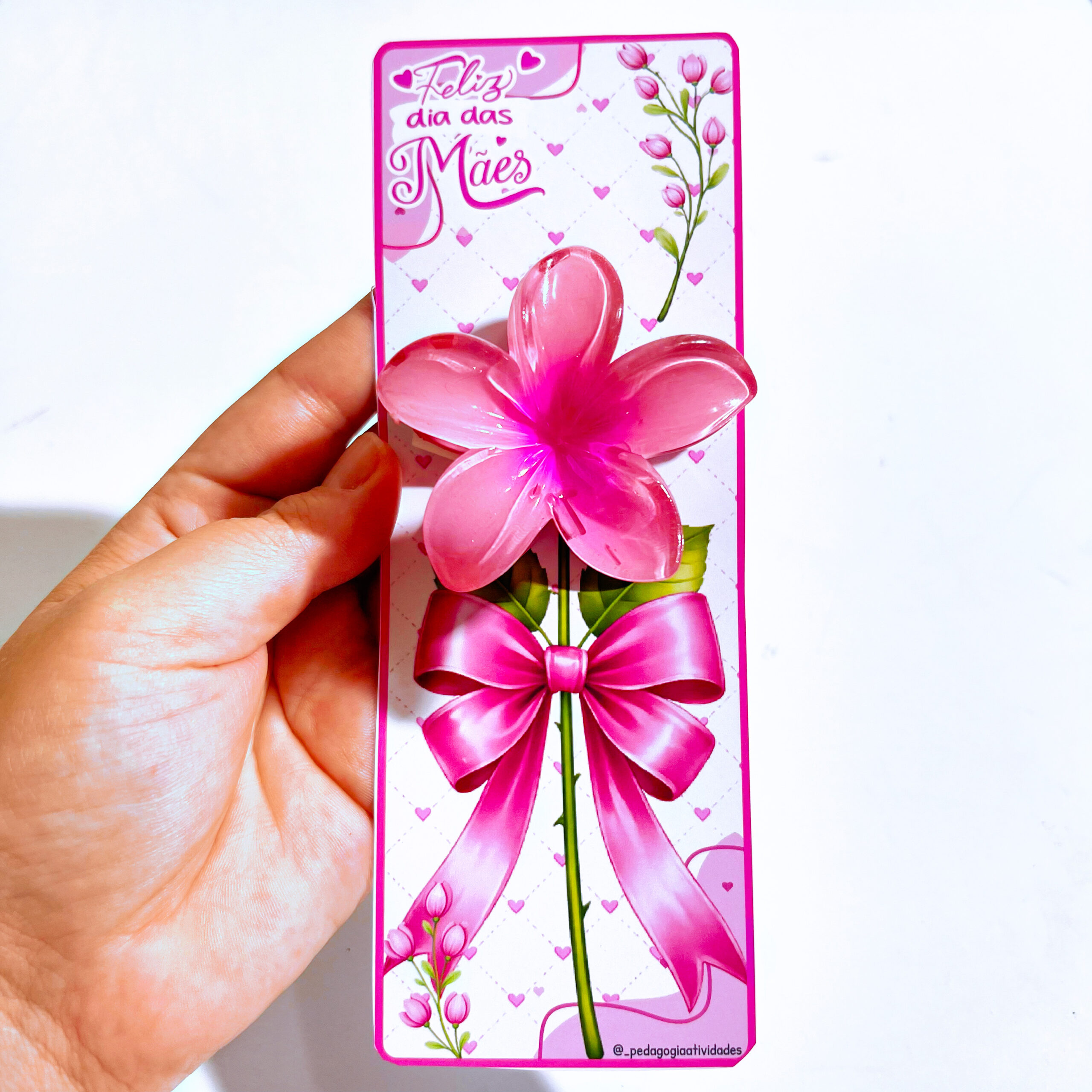 O Cartão de Dia das Mães com Flor 3D traz uma proposta simples, mas cheia de significado: um presente delicado que tem o espaço de colocar um prendedor de cabelo, transformando o gesto em emoção. ✨