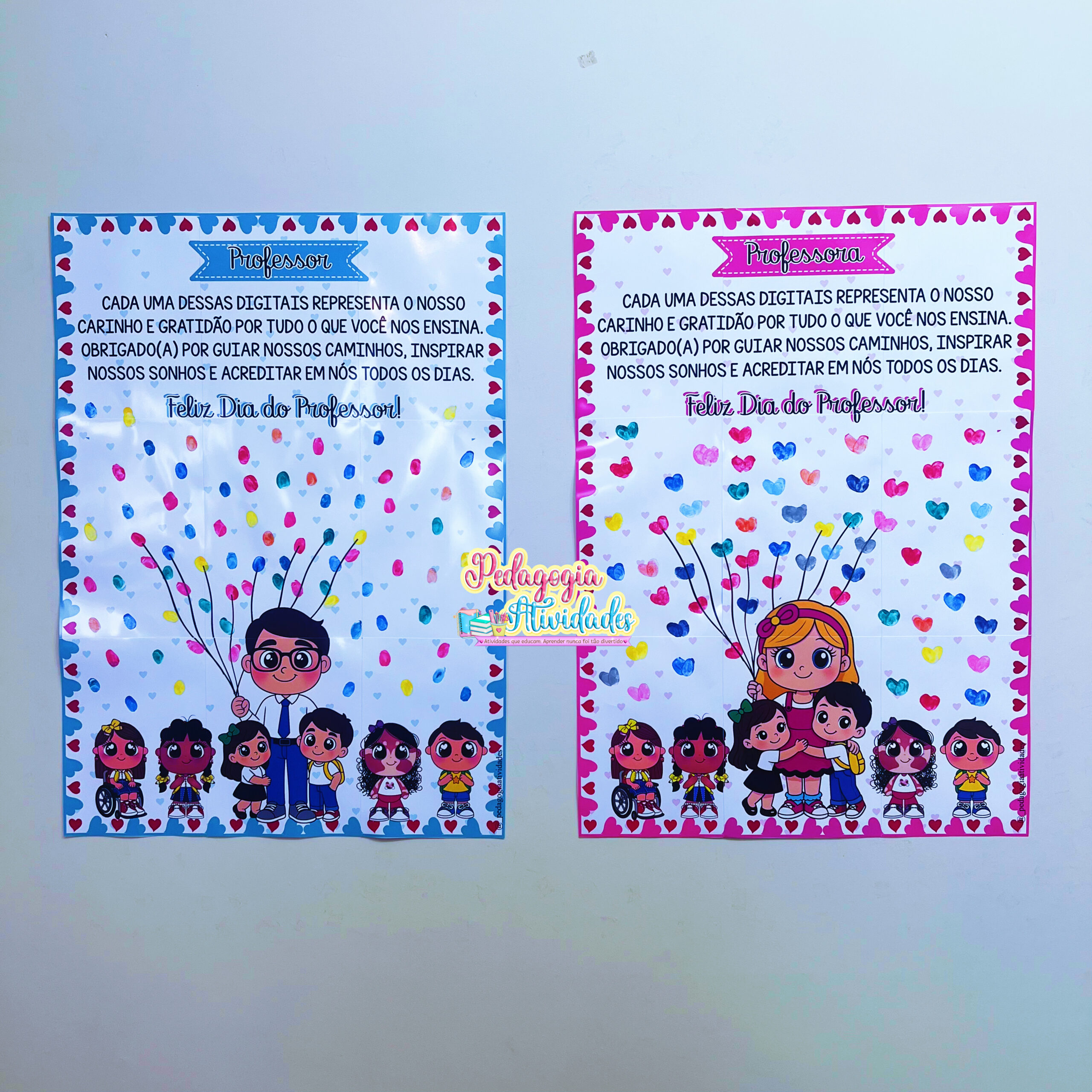 👩‍🏫👨‍🏫 As crianças carimbam suas digitais com tinta guache ao redor da imagem do professor ou da professora com os alunos, tornando a homenagem única, emocionante e memorável.