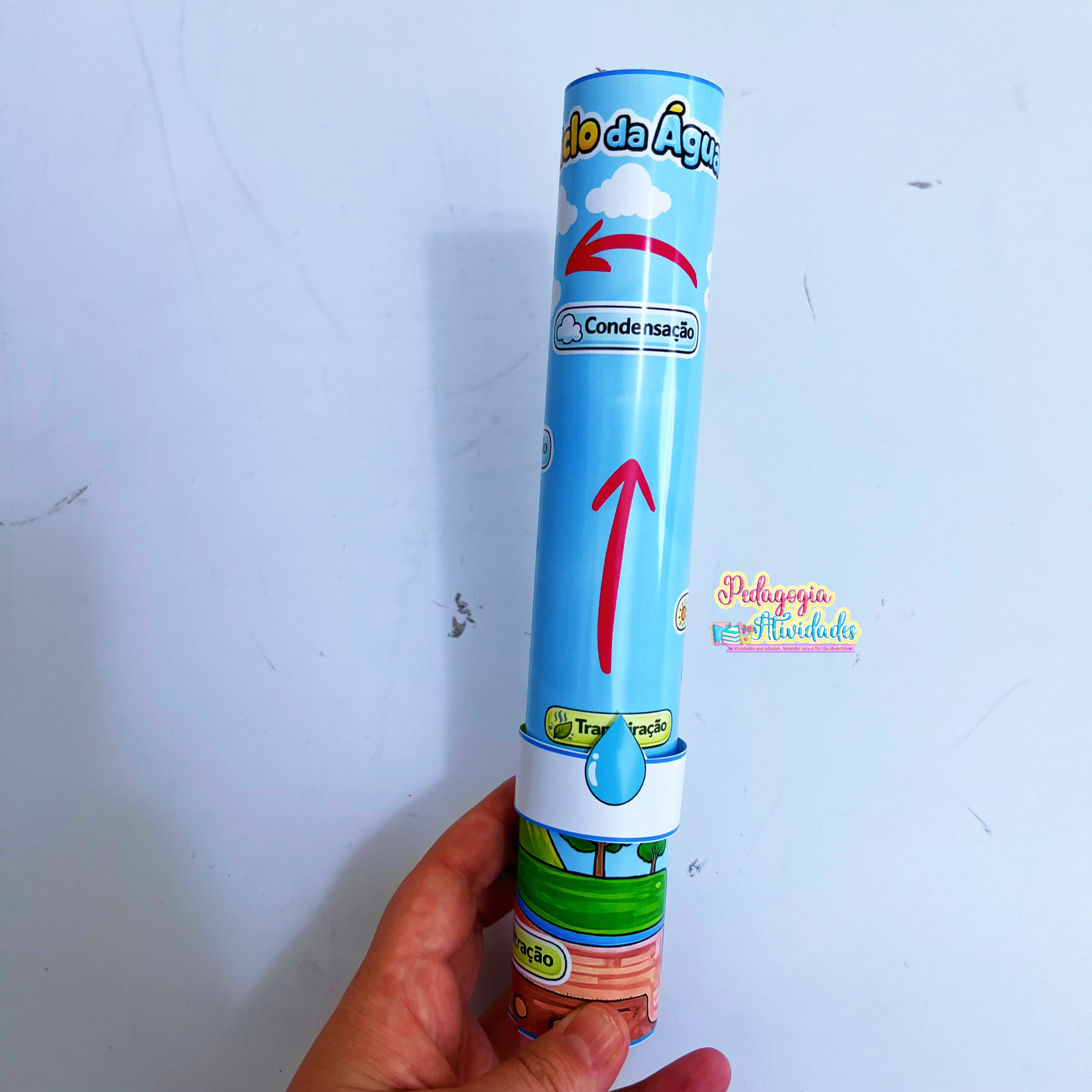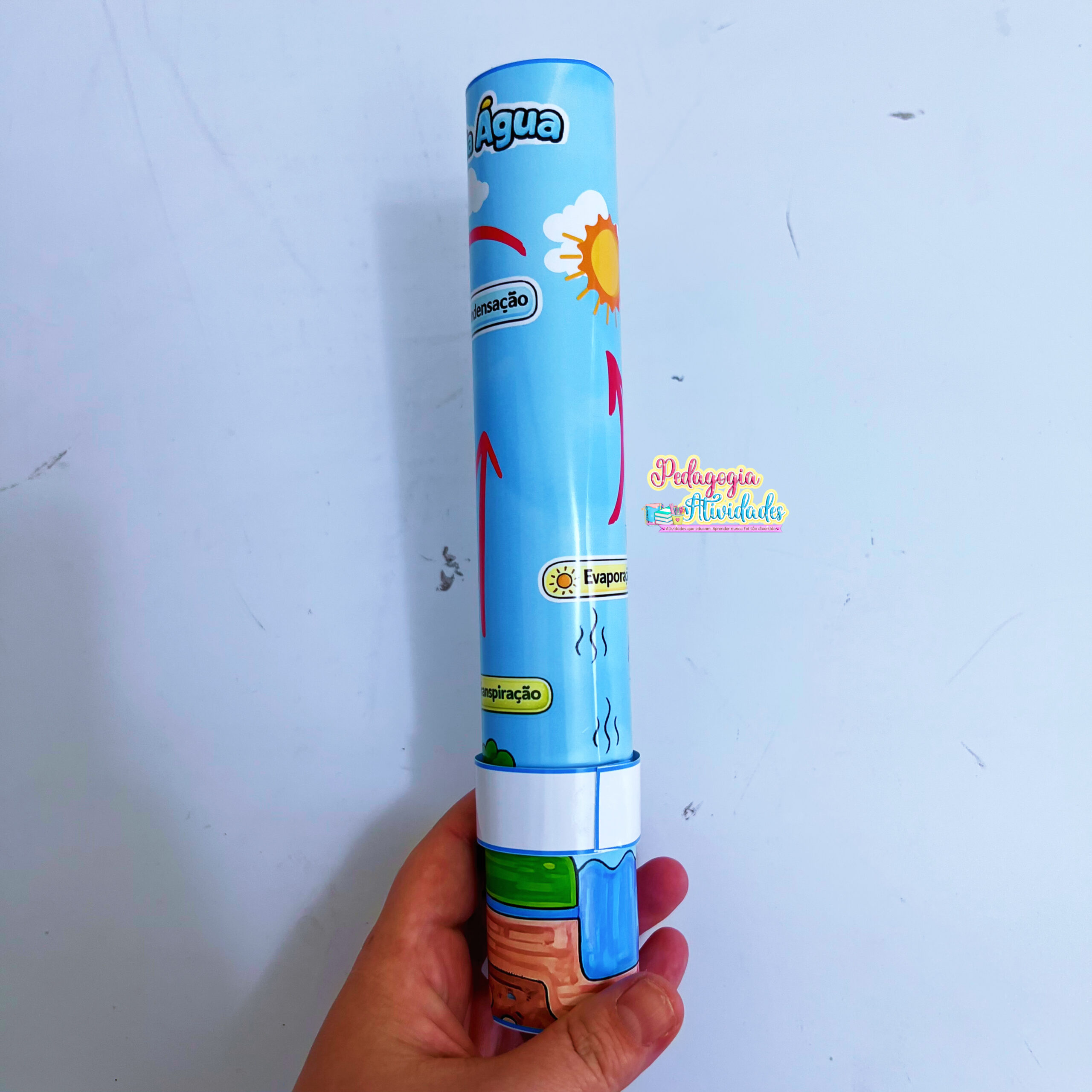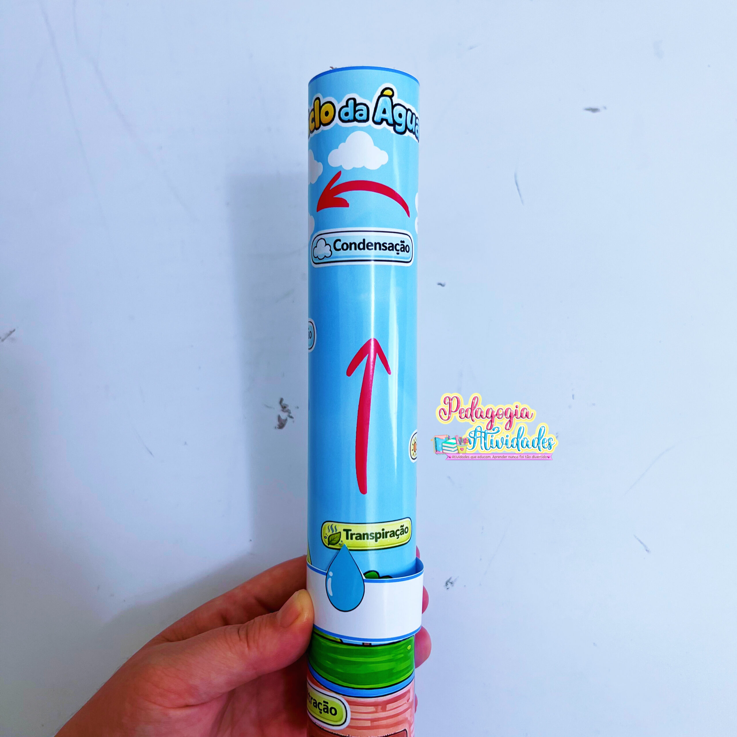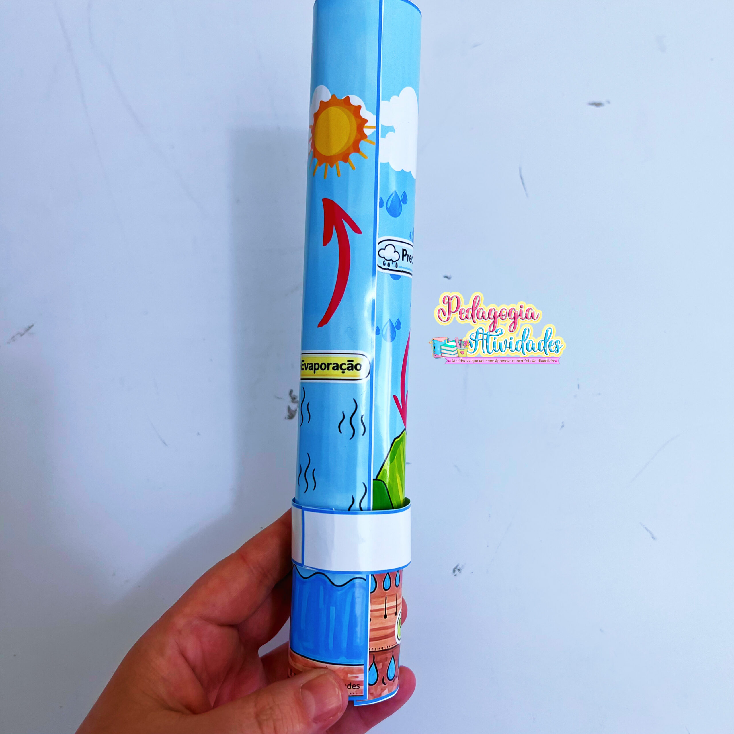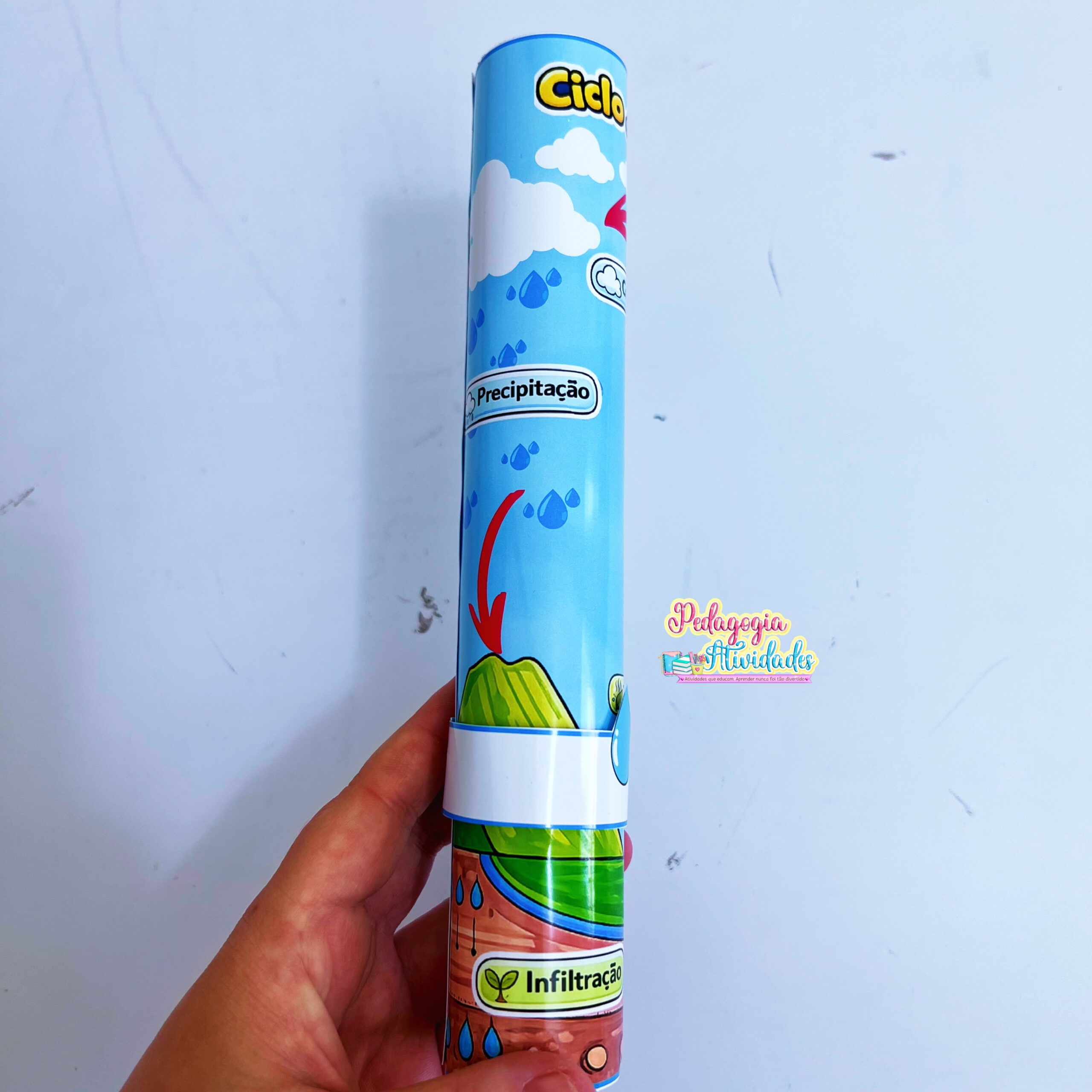 O Ciclo da Água Interativo permite que a gotinha se movimente pelas etapas utilizando um rolinho de papel toalha, tornando o aprendizado visual, prático e envolvente. Um detalhe simples que desperta a curiosidade e facilita a compreensão de um tema essencial.