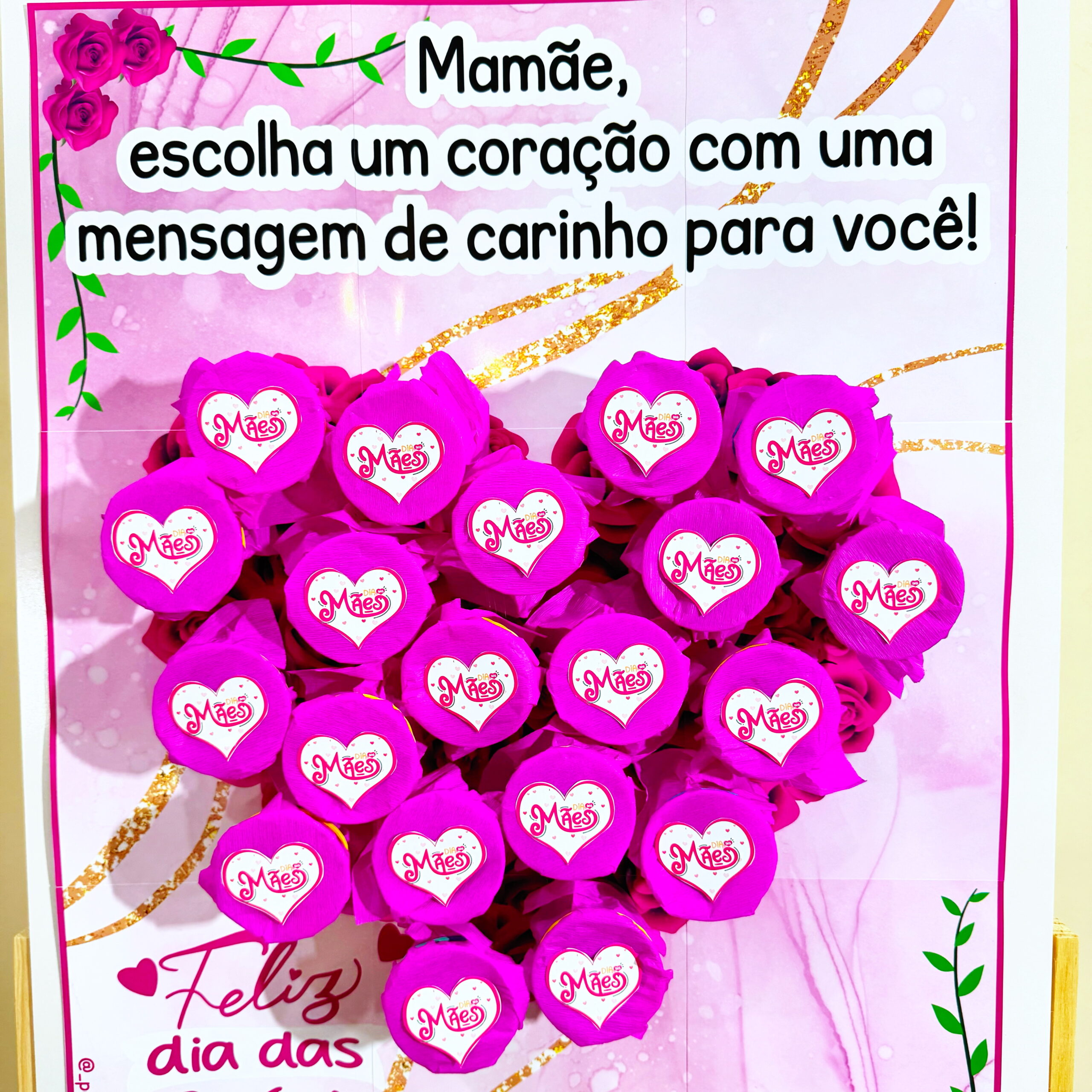 A Dinâmica Dia das Mães com Corações traz uma proposta simples, mas cheia de significado: cada mãe escolhe um coração… e é surpreendida com uma mensagem de carinho que toca de verdade.