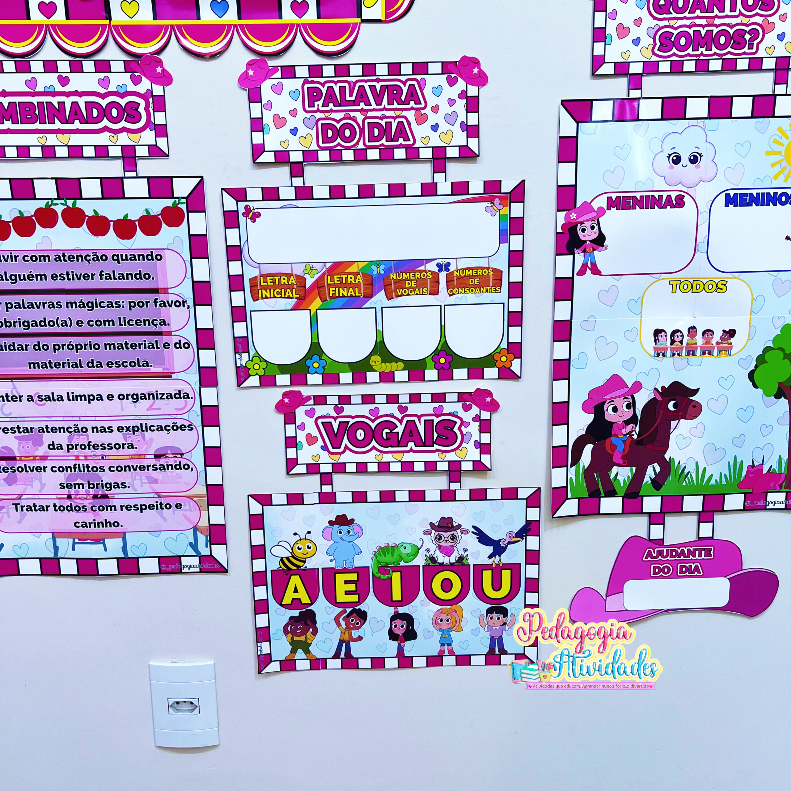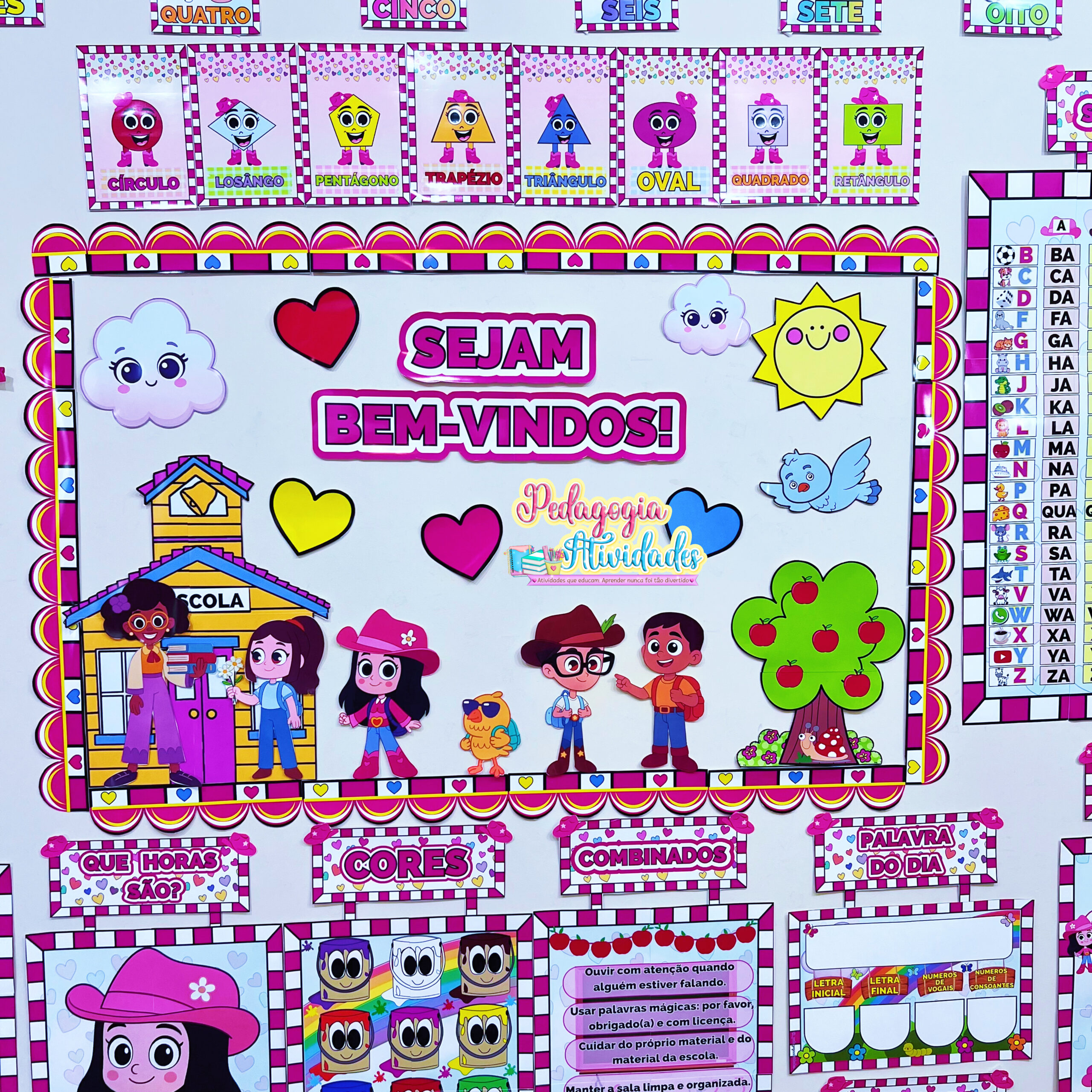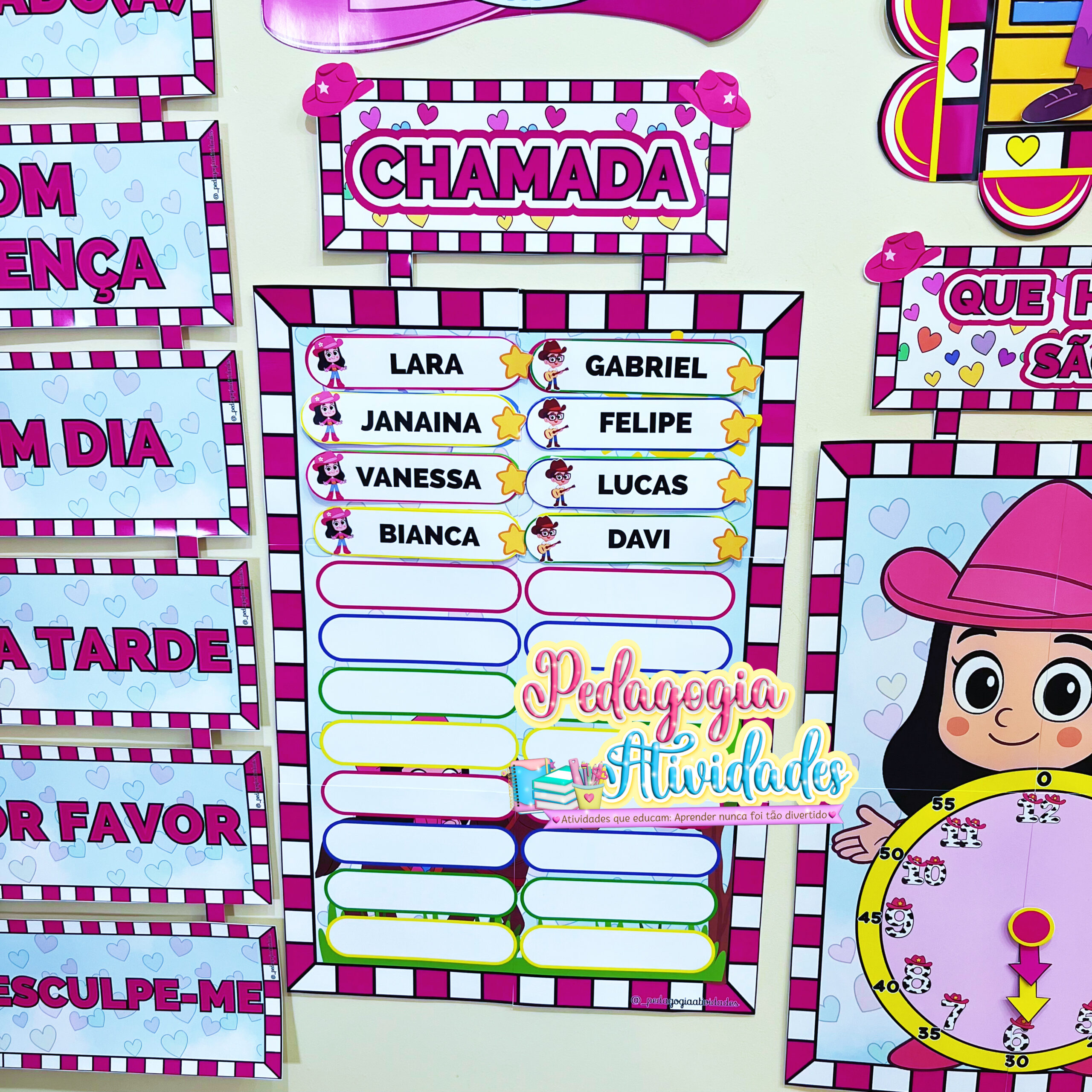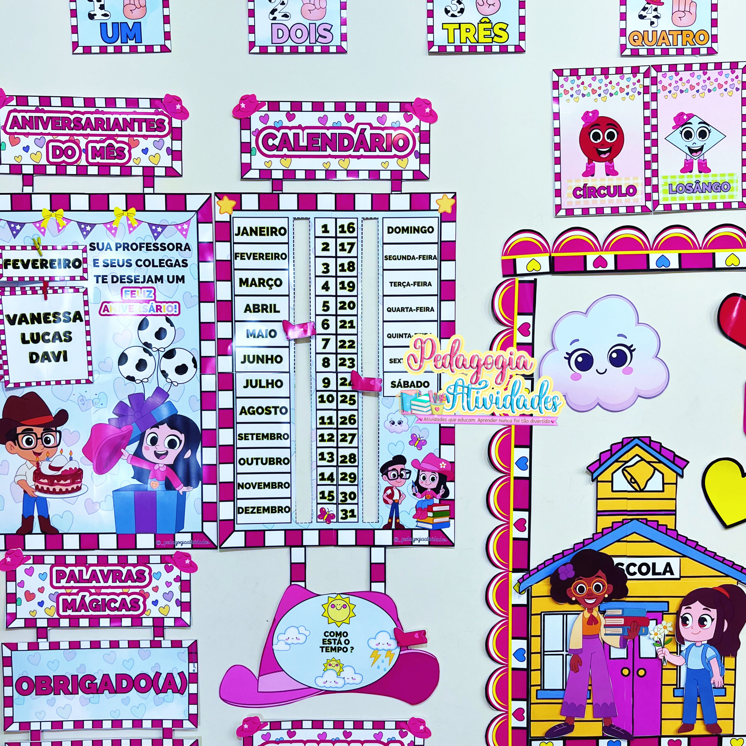 Um material criativo, colorido e cheio de personalidade, perfeito para organizar a rotina da sala de aula, enriquecer as práticas pedagógicas e deixar a decoração ainda mais encantadora na Educação Infantil e no Ensino Fundamental.
