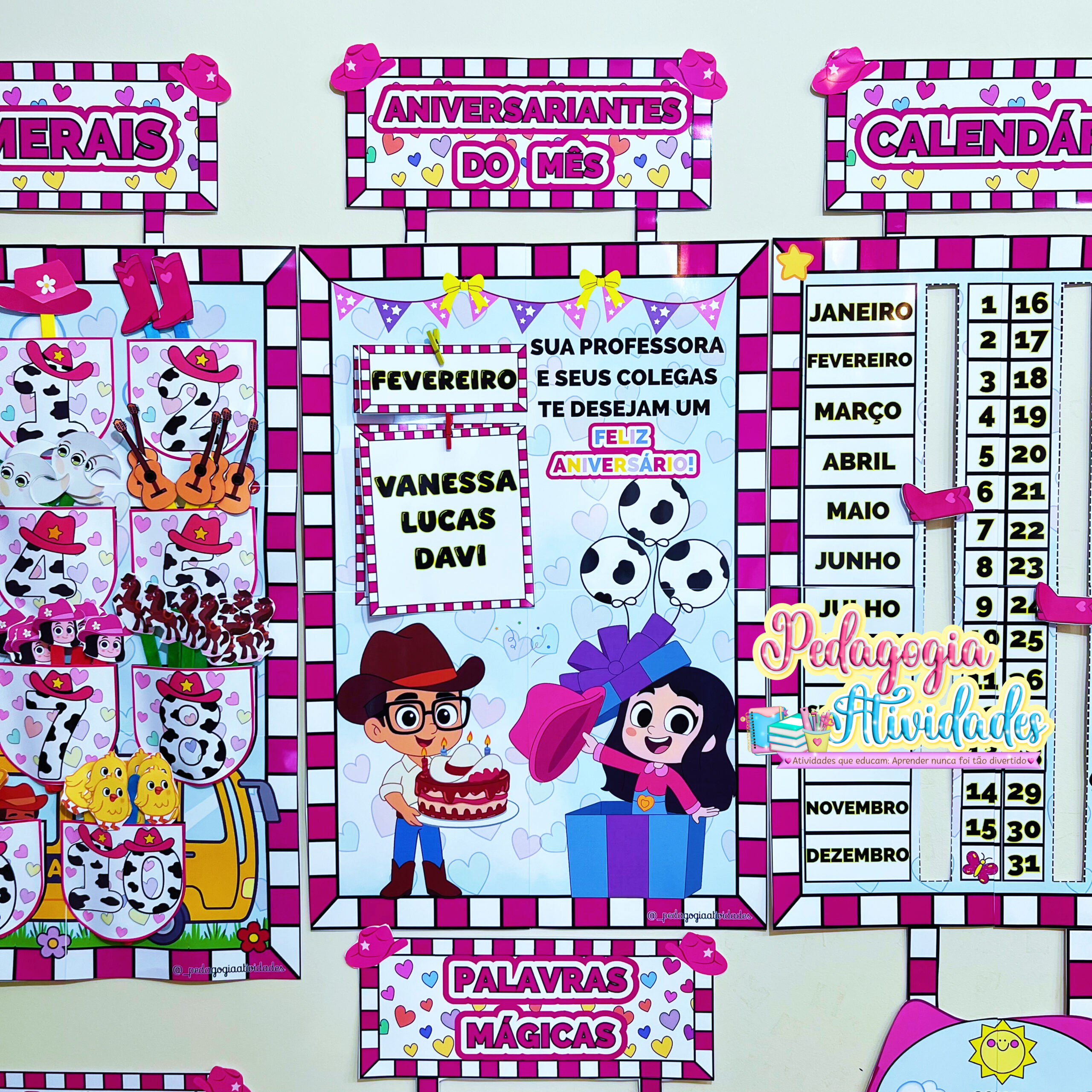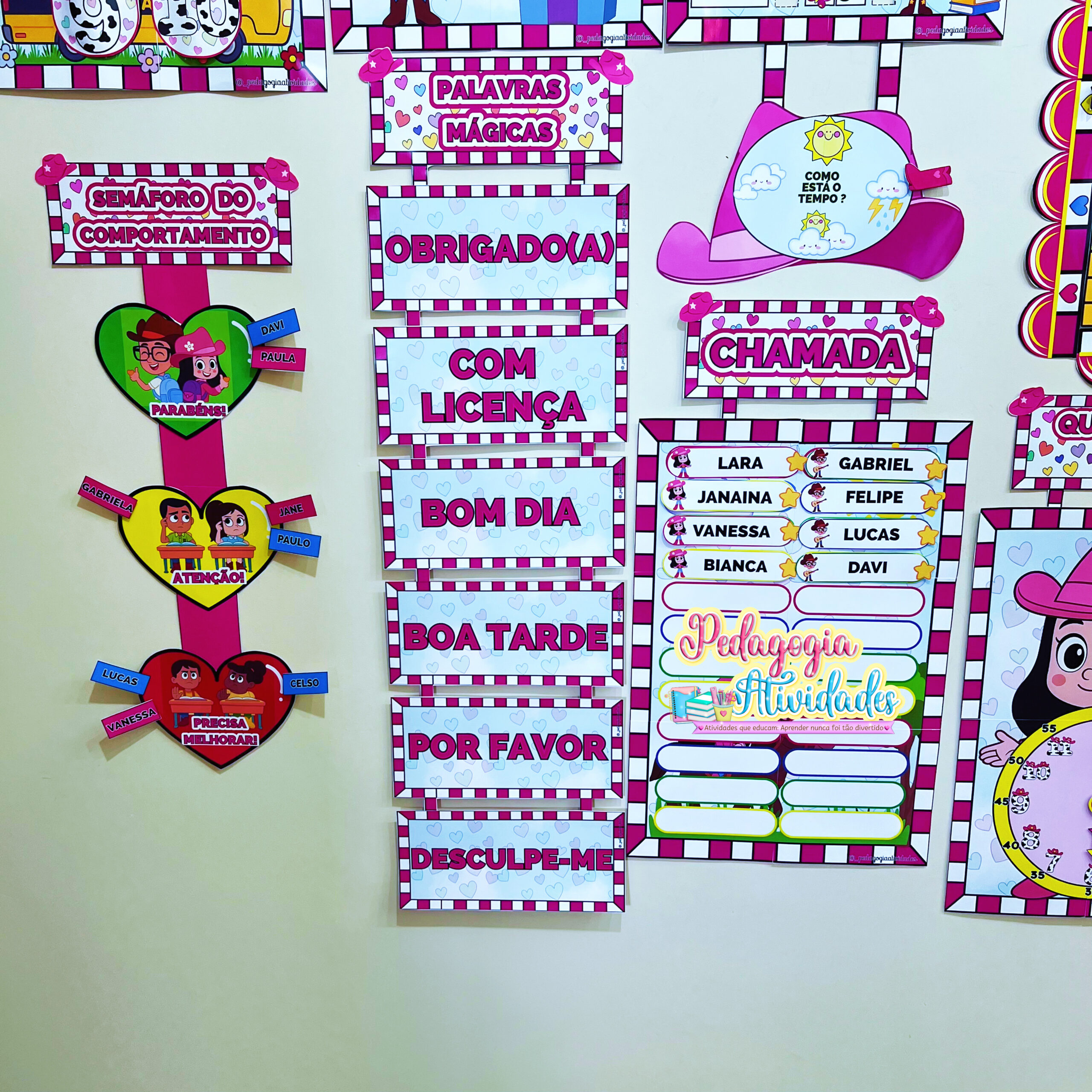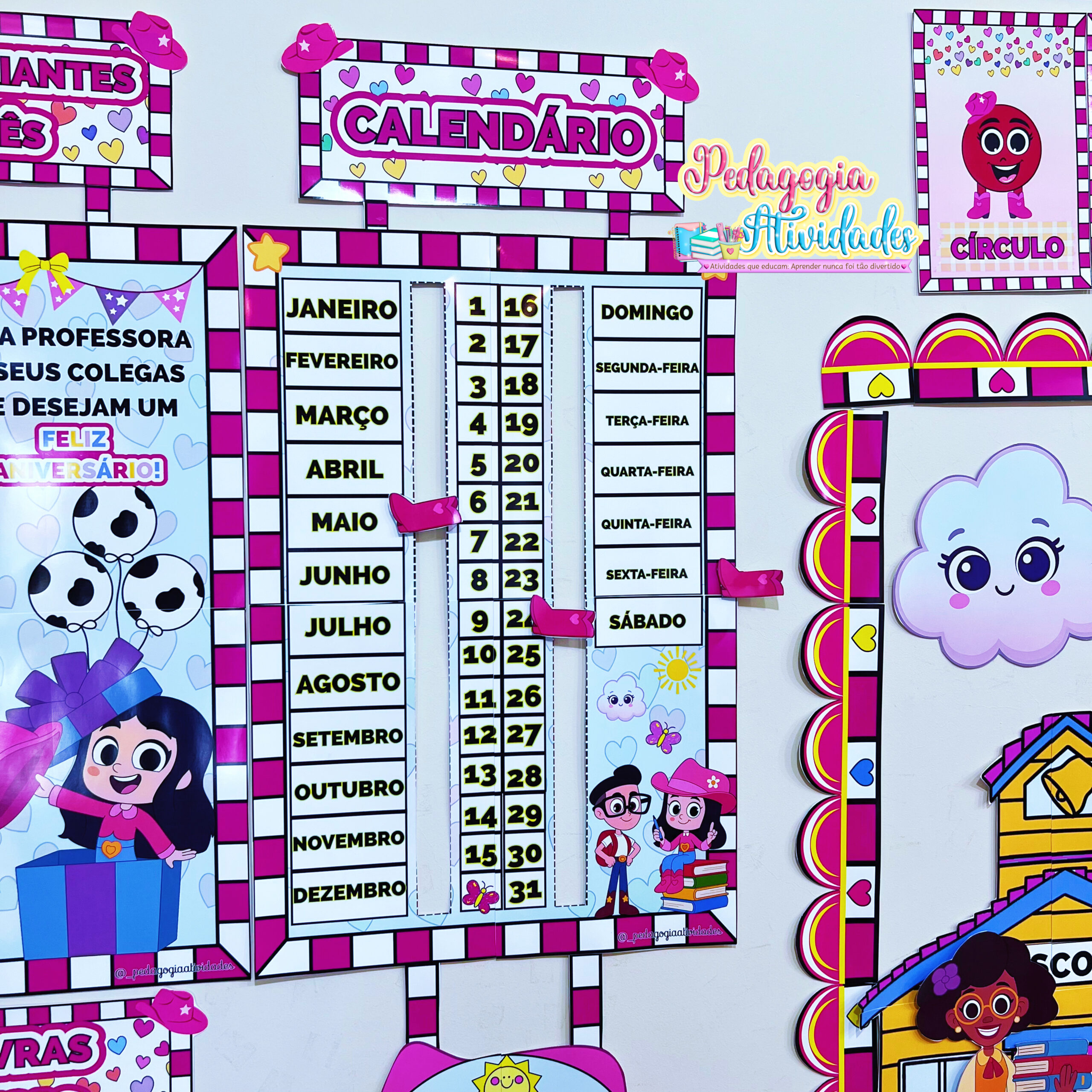 Um material recheado com 21 recursos pedagógicos, perfeito para Educação Infantil e Ensino Fundamental, auxiliando na rotina da sala de aula, decoração e painel de porta.