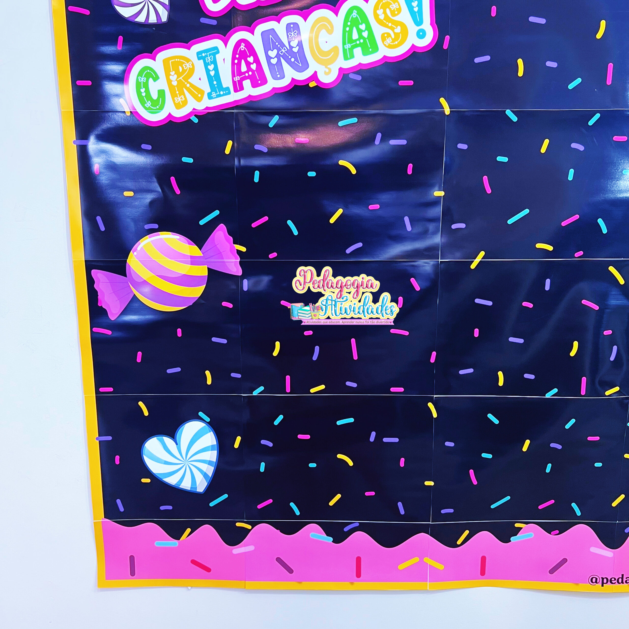🎉 Painel de Fotos – Dia das Crianças (Tema Doces) 🍭✨