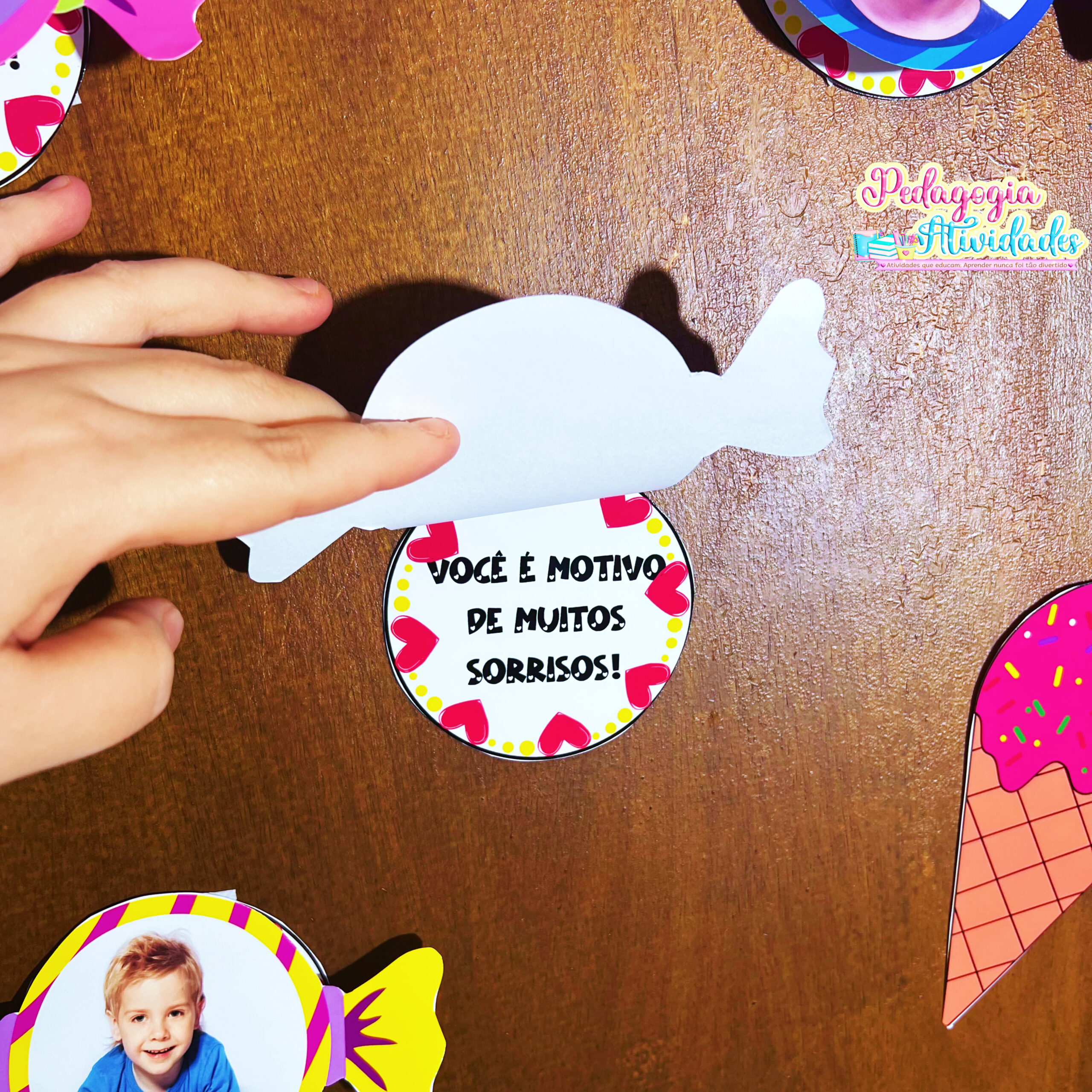 Com um design moderno, colorido e alegre, este painel transmite afeto e cria memórias únicas ao valorizar cada criança com sua foto e mensagens especiais nos bombons.