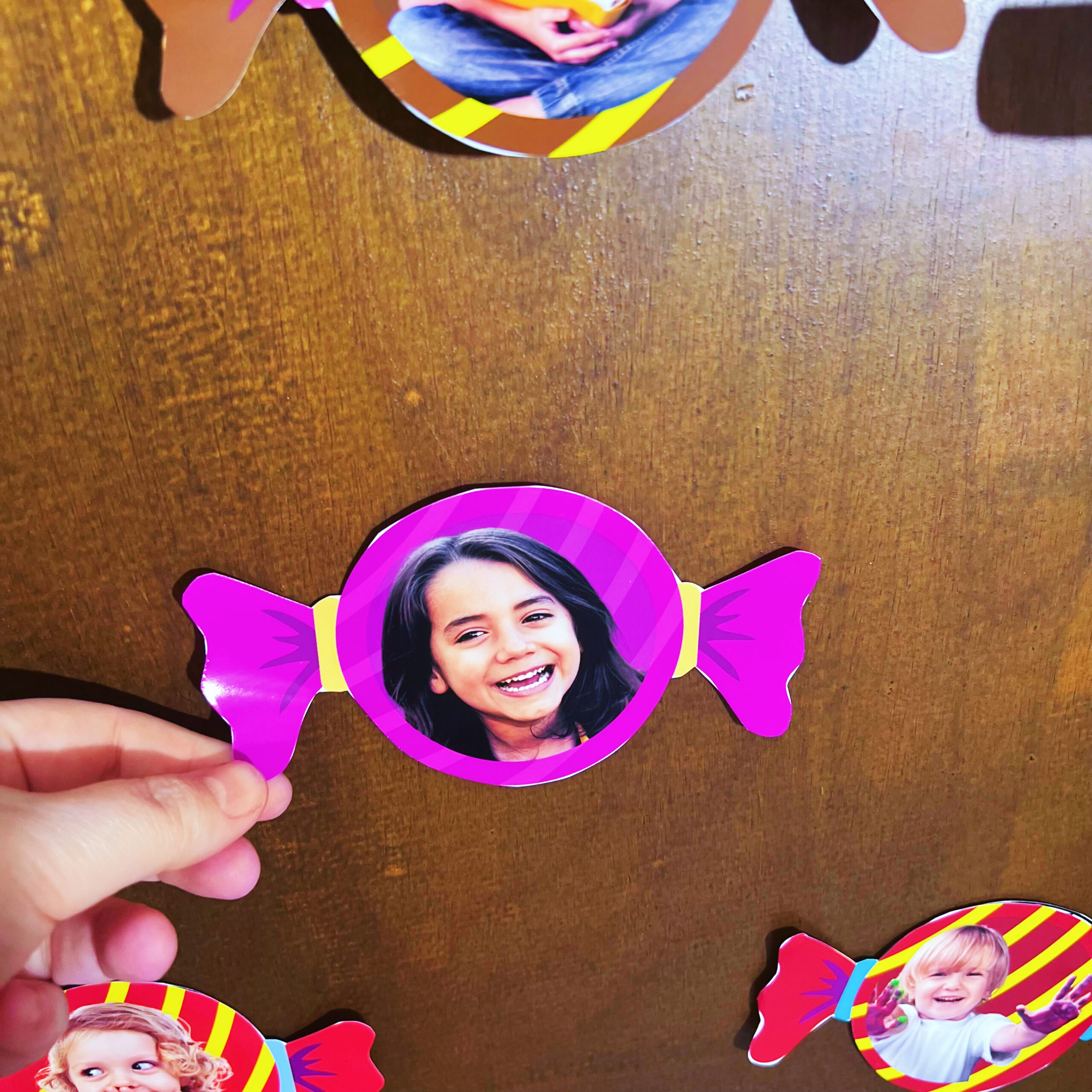Com um design colorido, alegre e moderno, este painel valoriza cada criança com sua foto e mensagens especiais nos bombons, tornando a comemoração única.