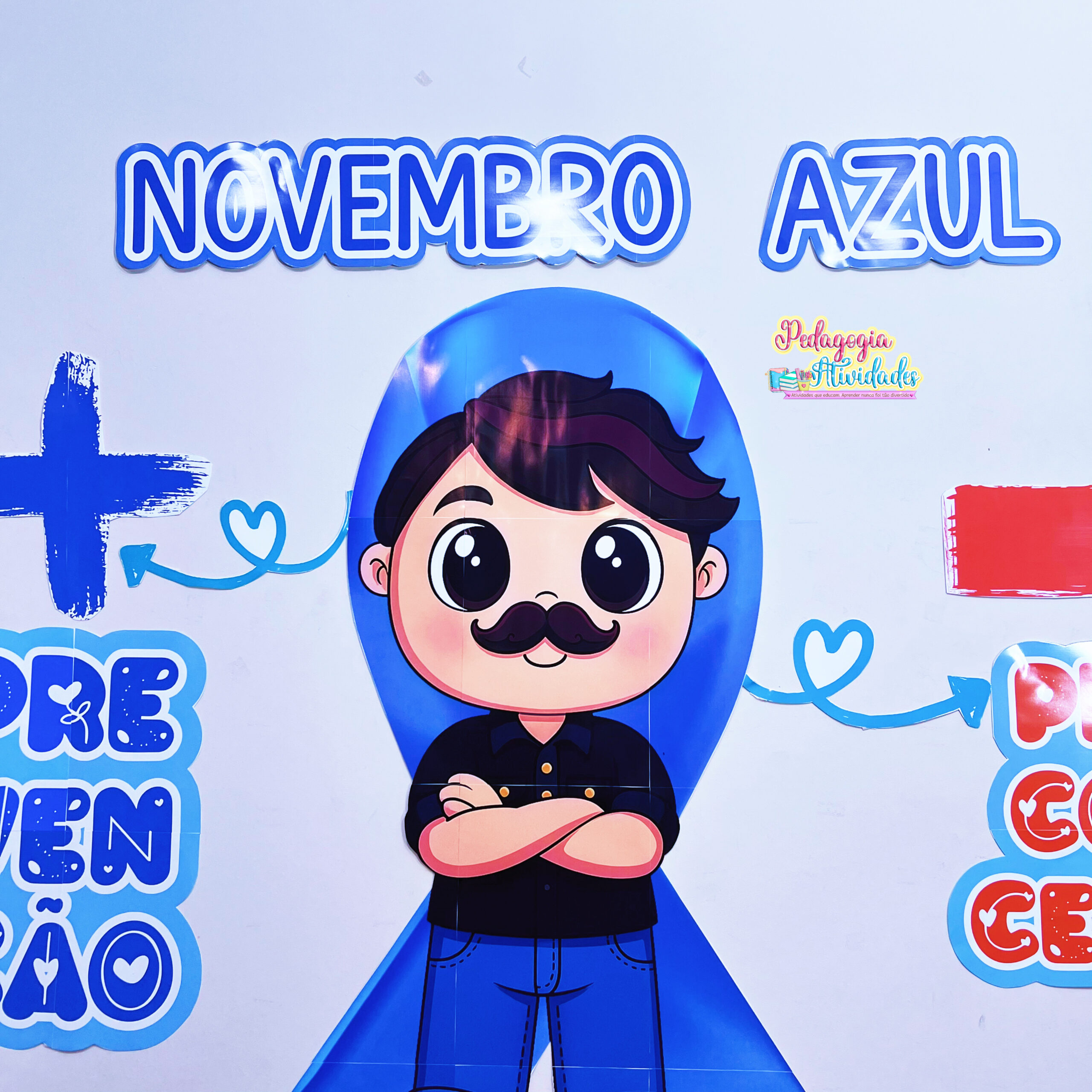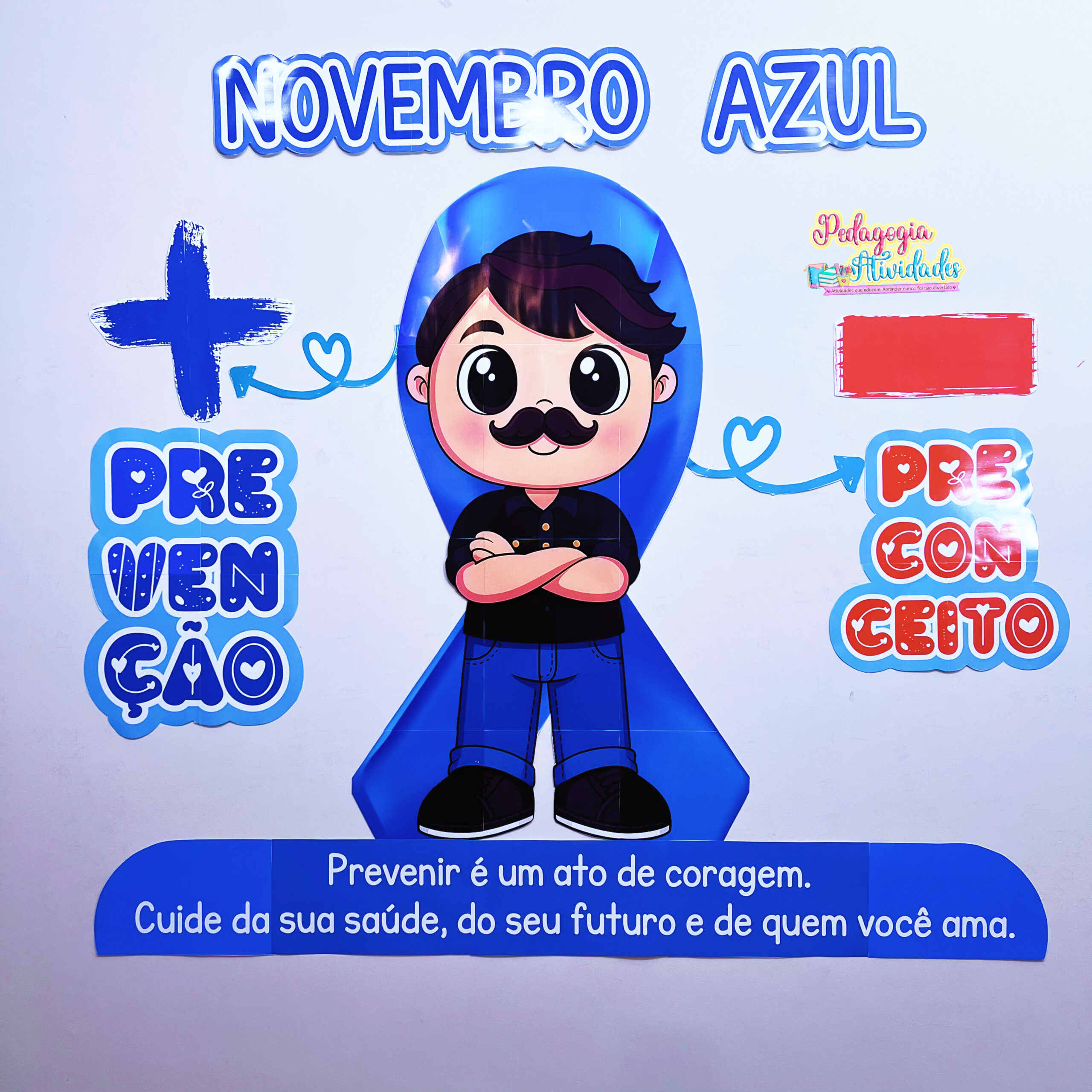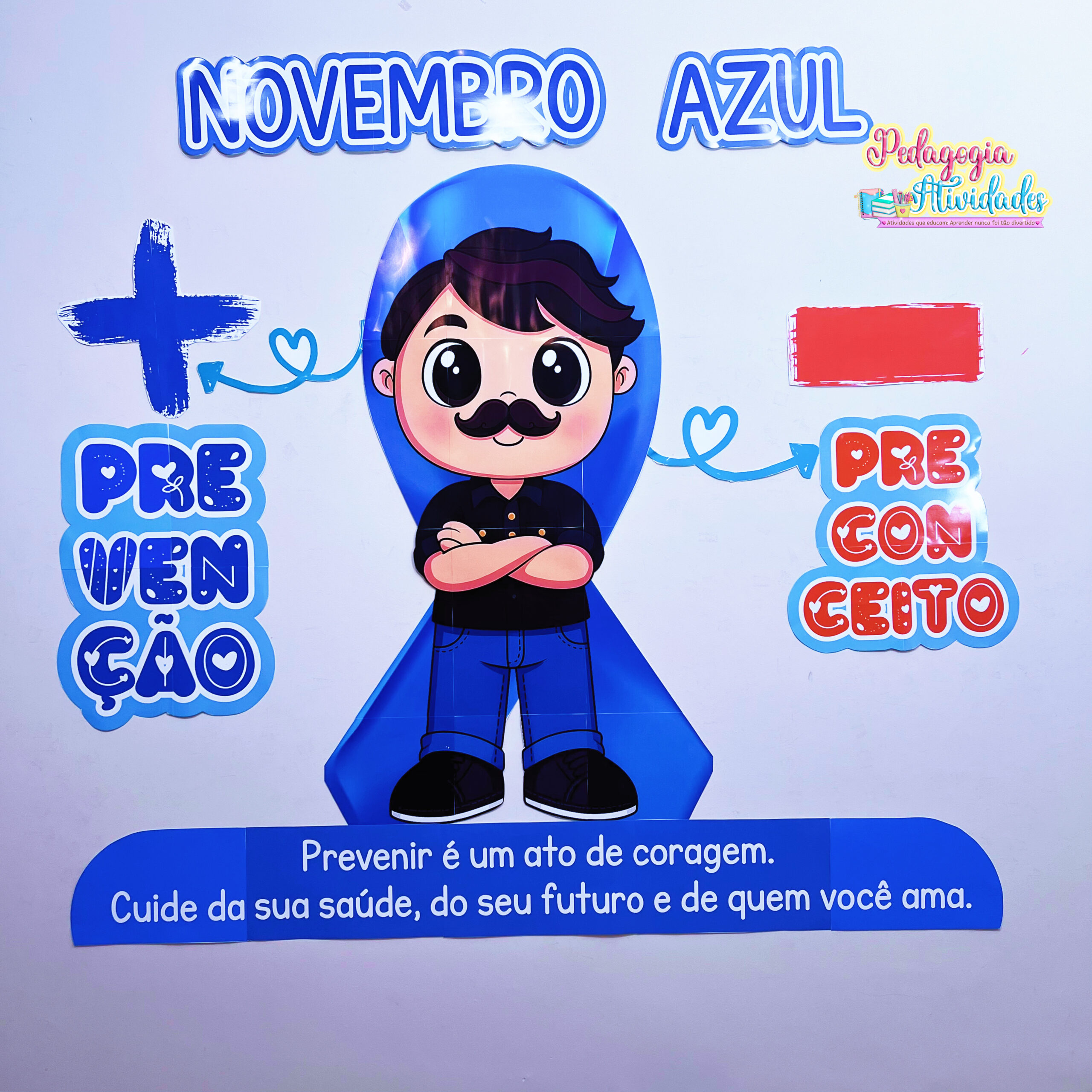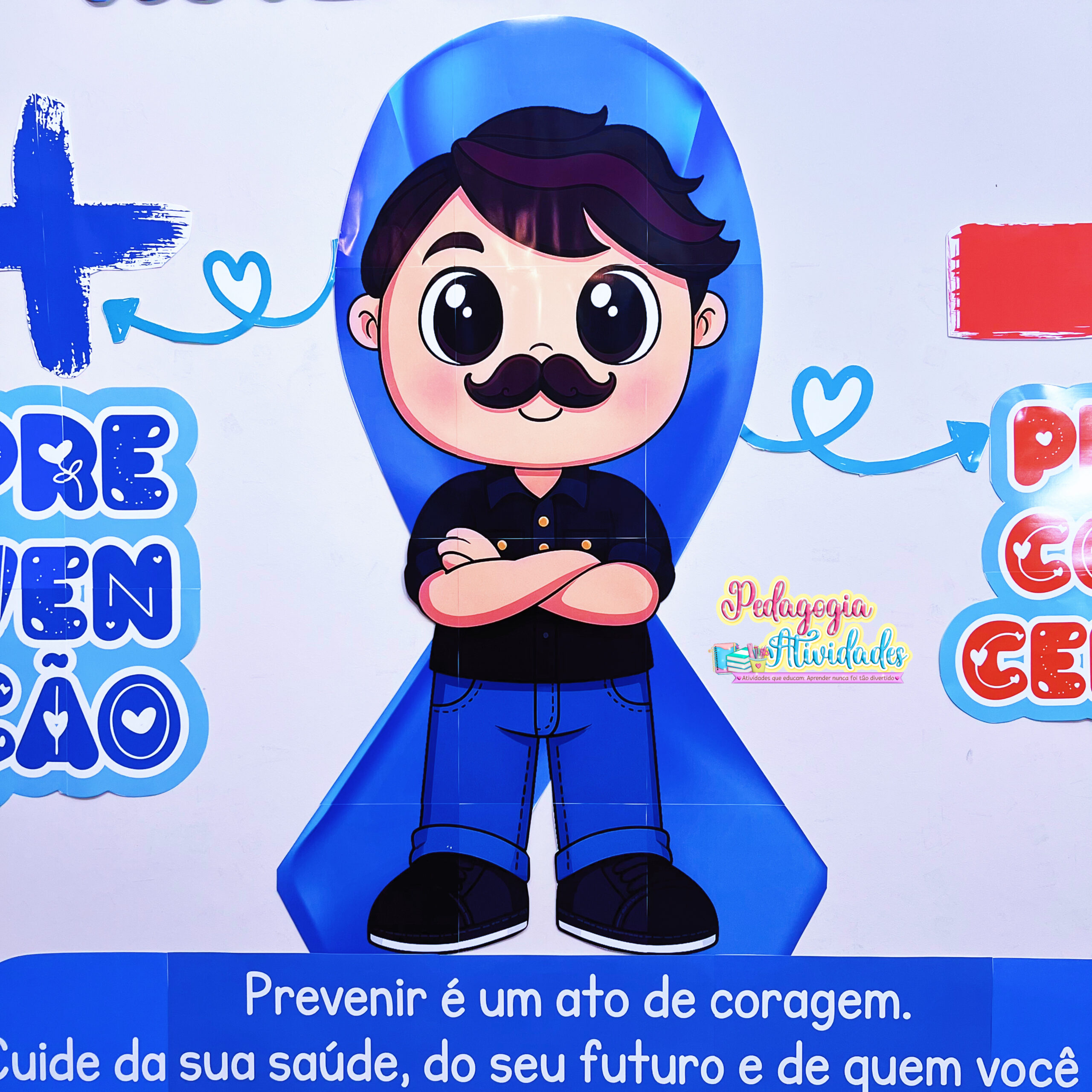 Um painel criativo, educativo e interativo, perfeito para trabalhar o Novembro Azul e estimular a reflexão sobre saúde masculina, prevenção e combate ao preconceito de forma divertida e envolvente!
