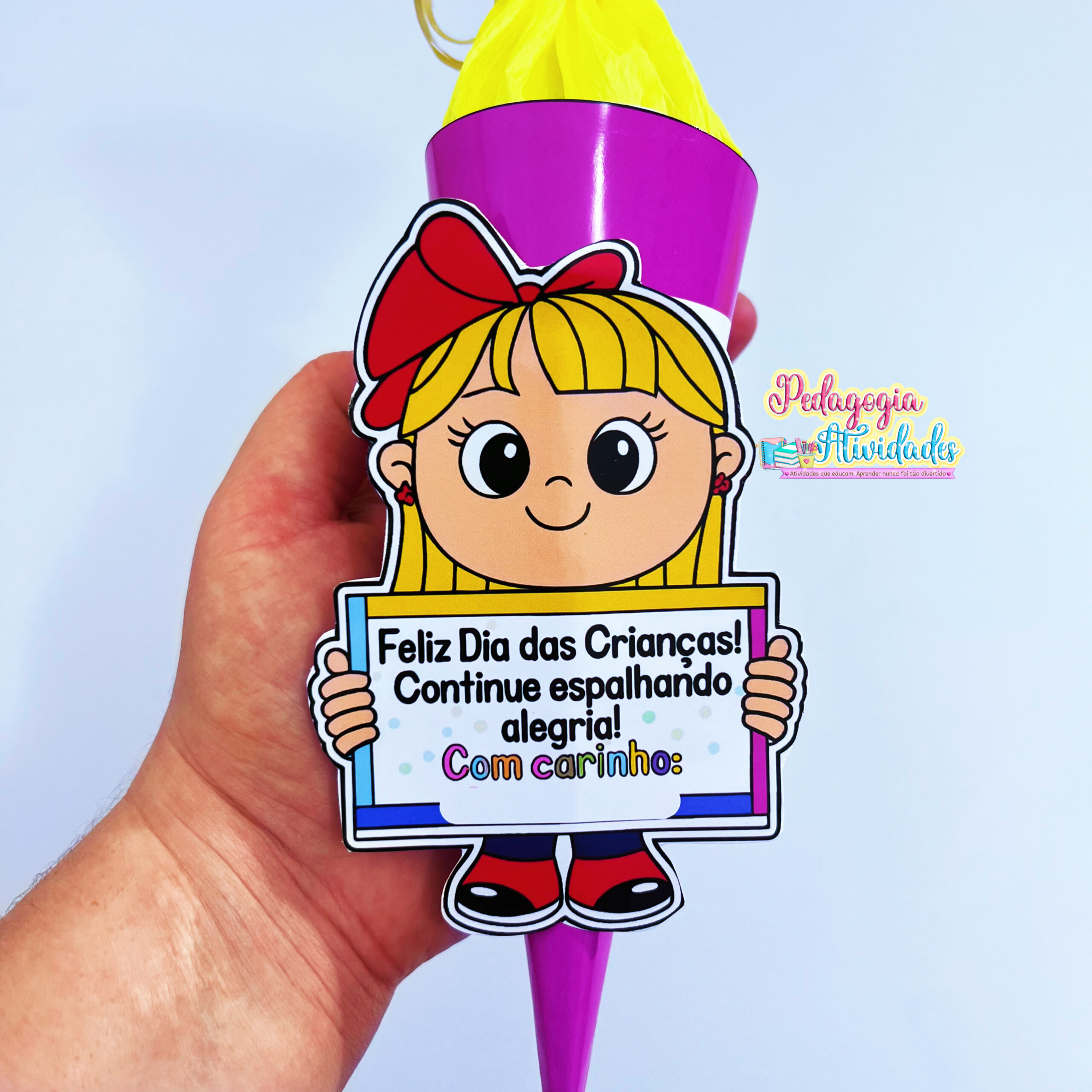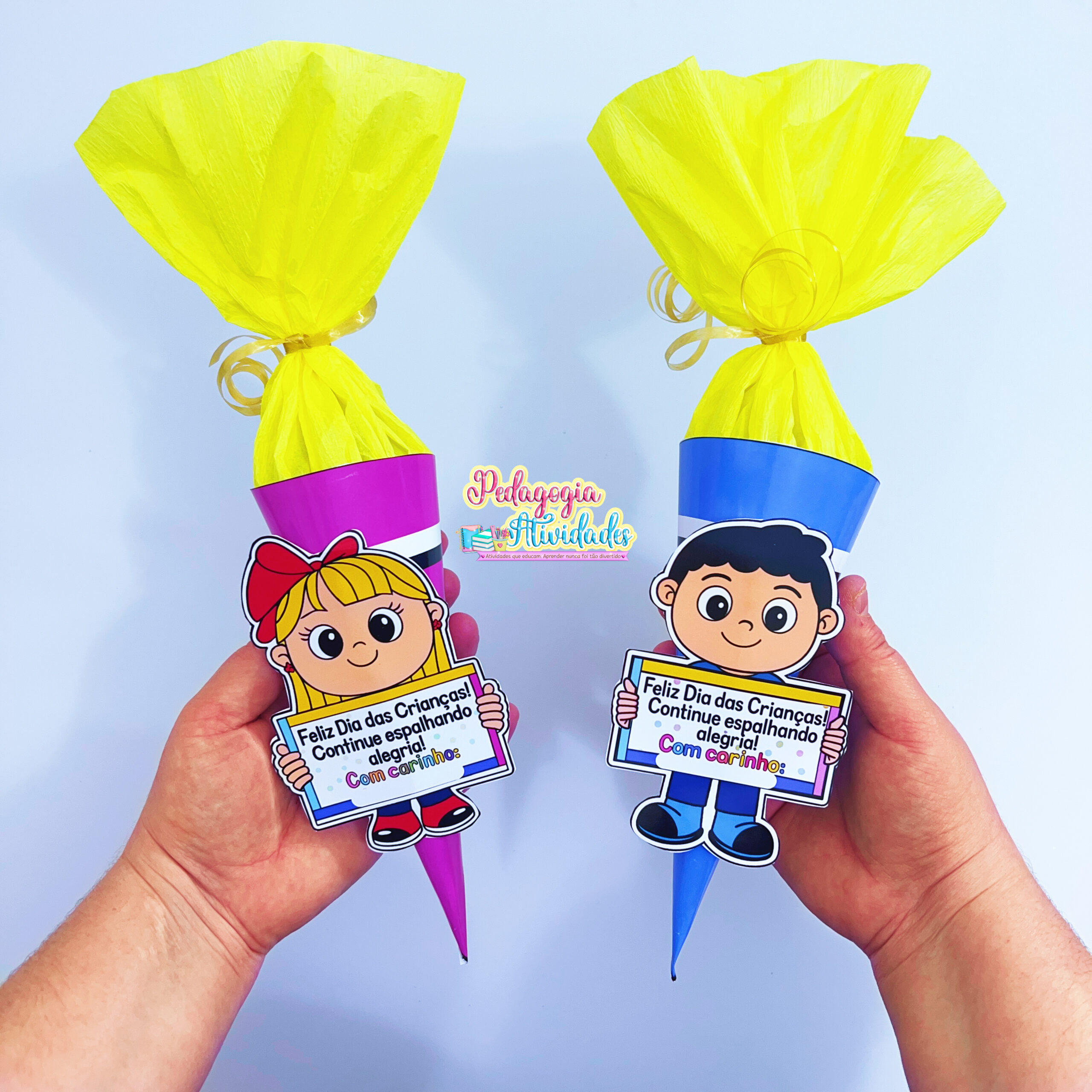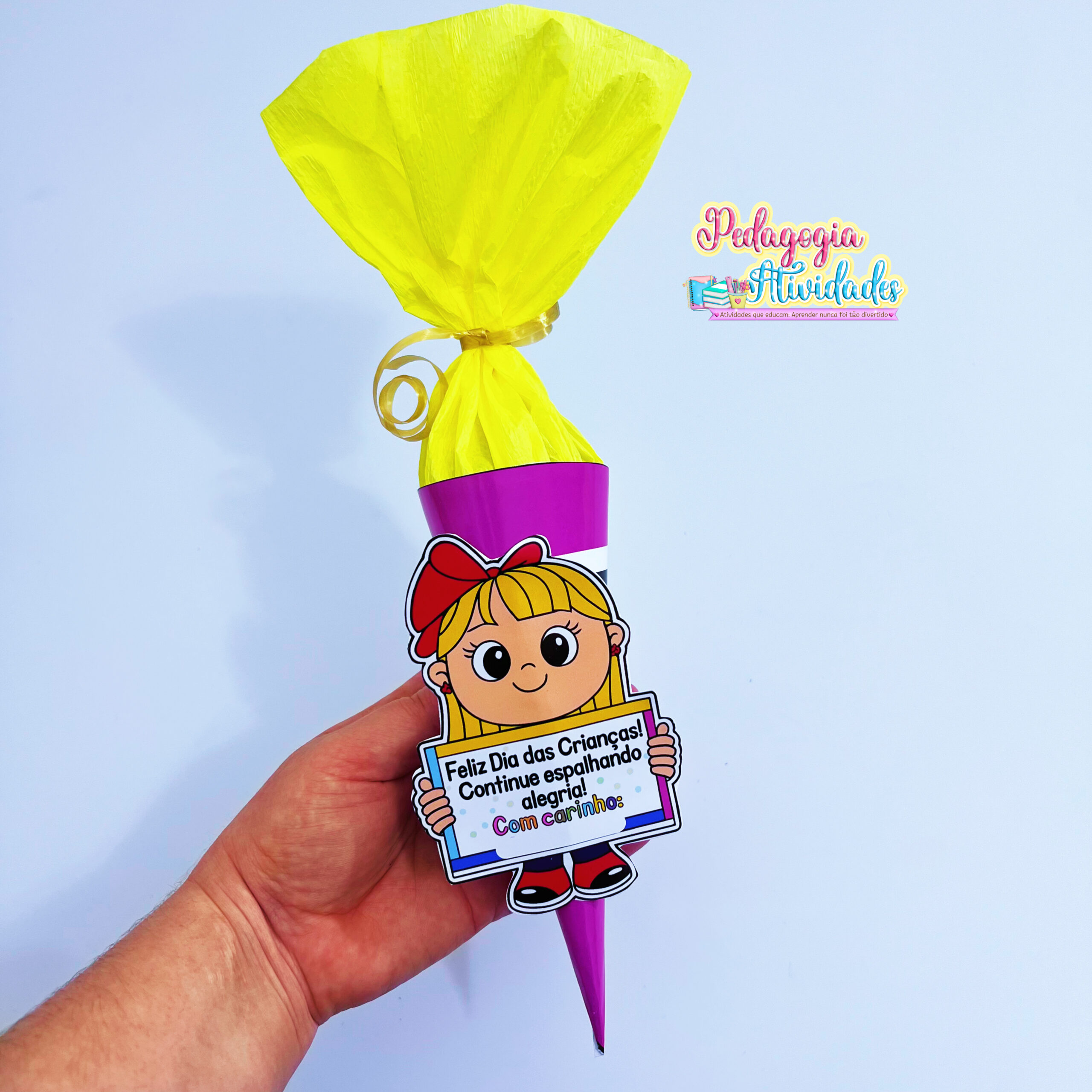 Porta Lembrancinha em Formato de Cone – Dia das Crianças