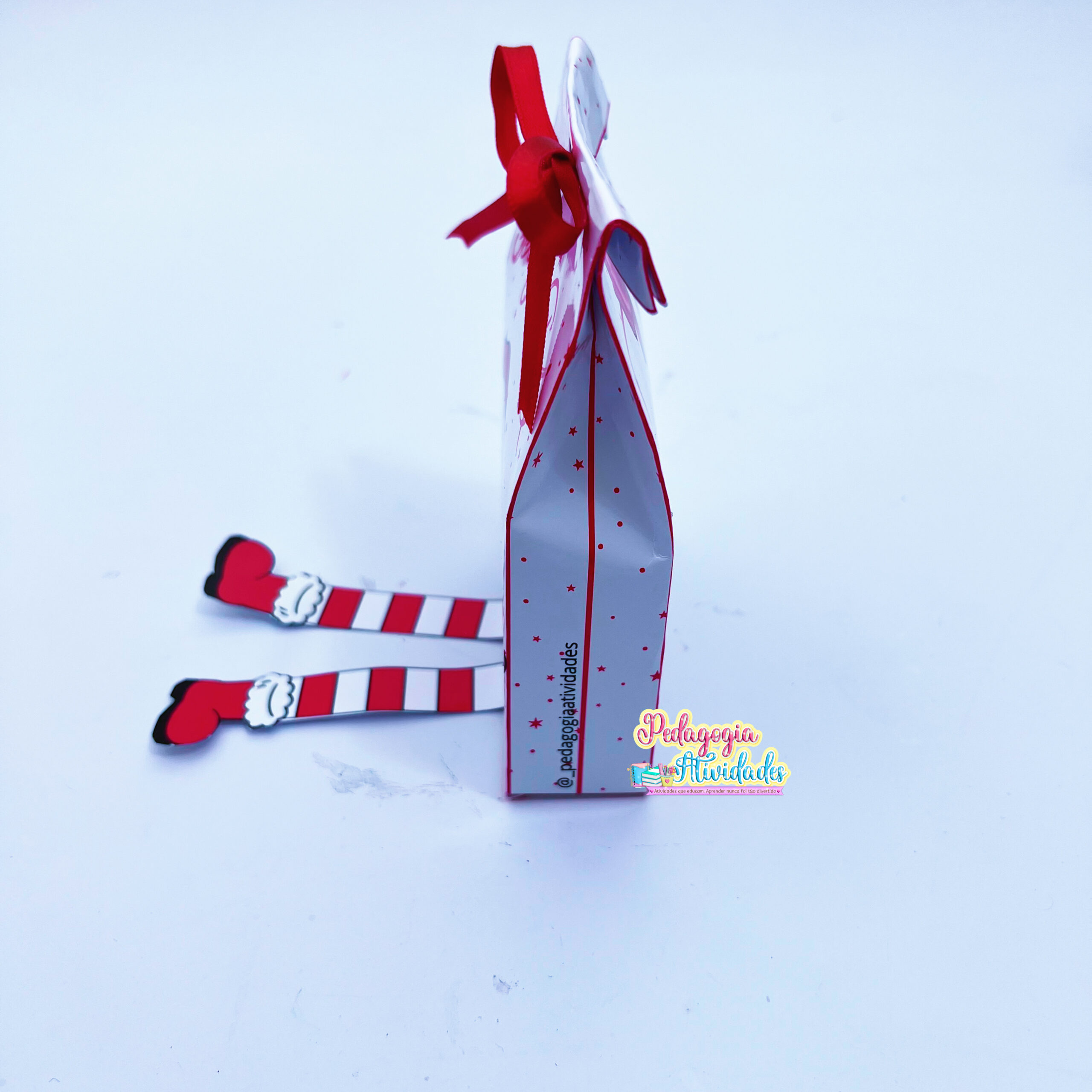 A Sacolinha de Natal com as perninhas balançando do Papai Noel conquista crianças e famílias na hora: é charmosa, leve, engraçadinha e ainda traz uma mensagem carinhosa no verso. Um mimo que vira lembrança e sorriso! 🎅💛